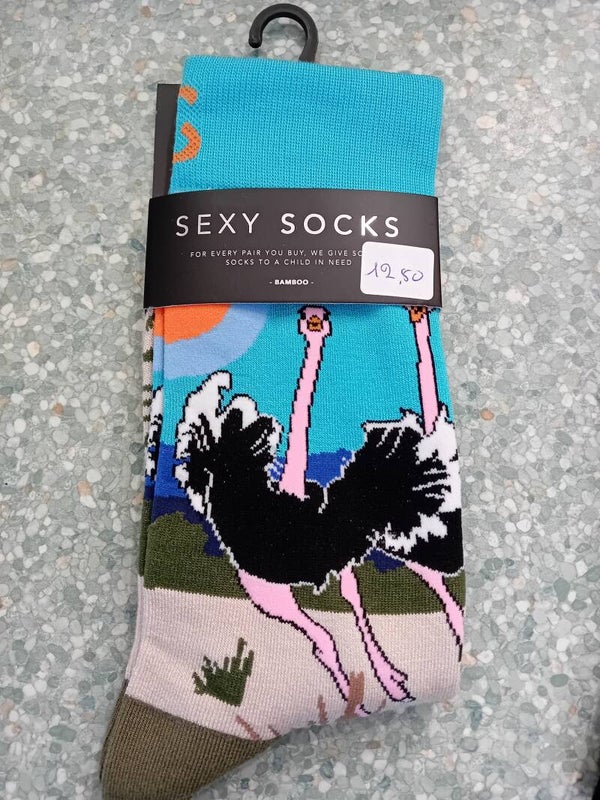 Deze Struisvogelsokken zijn té grappig. Maat 39-42. Gemaakt in Zuid Afrika, voor ieder paar die het fabriekje verkoopt, wordt er één paar uitgedeeld aan de hulpbehoevenden. Een prachtig project waar we graag aan bijdragen!
